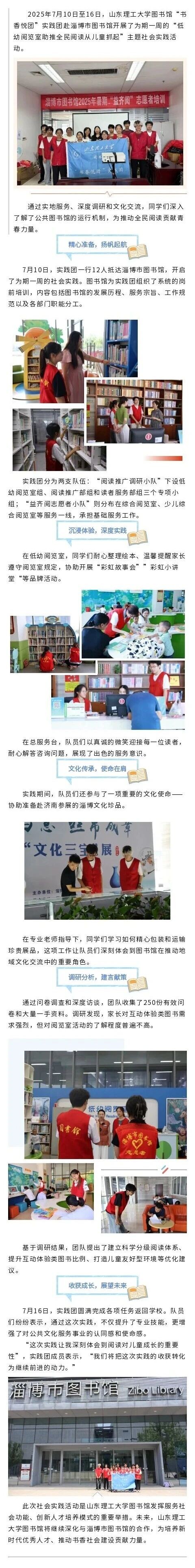 书香润童心,实践促成长 | 山东理工大学图书馆“书香悦团”赴淄博市图书馆暑期社会实践成果展